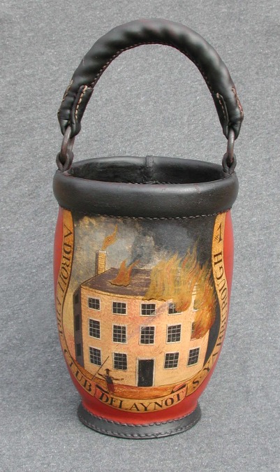 A circa 1800 bucket design from Boston: "Androit" implies that this fire fighting organization had the resources to procure a mechanical fire engine. In the early years of fire engine development, firebuckets were still necessary to fill an engine's reservoir by bucket brigade if no water source could be reached drafting hose. |